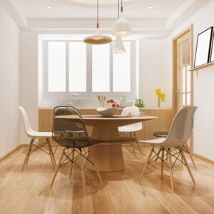 3d rendering dining set in modern scandinavian kitchen
